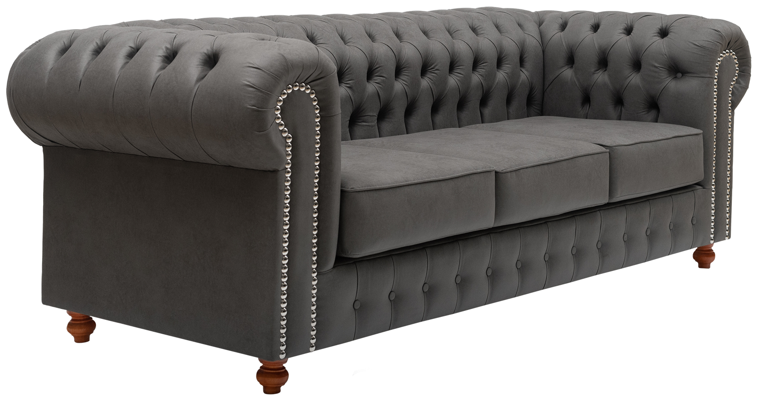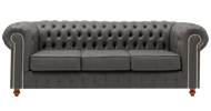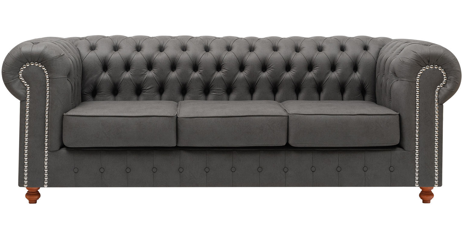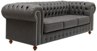 Relleno almohadones: Asiento: Placa poliéster Soft de 14 cm, enfundada en guata 200 gr/m2, con cierre. Patas de madera lustradas torneadas. Color de tachas opcionales.